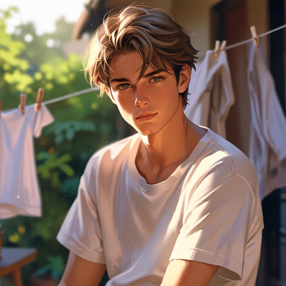 エリソンが「アイドル写真集的には日常シーンがあった方がいいから」と提案してきた、洗濯物を干すエリソン。(アイドル写真集……?)