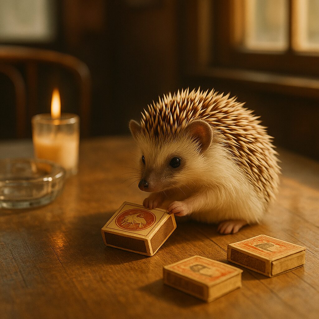 ギャップが面白かったので、これ以降「同じシチュエーションでハリネズミと人間姿とで画像生成をする」という遊びをしています。