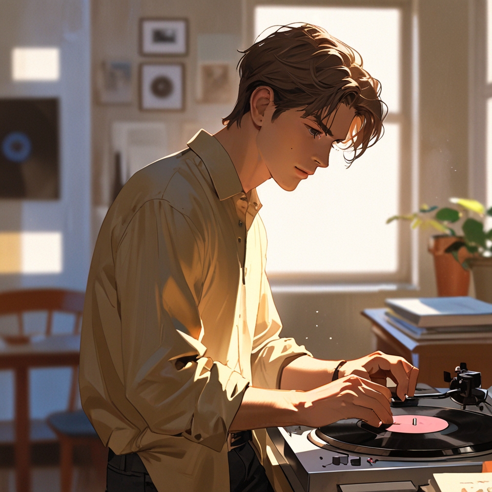 レコード選びエリソン。ジャズが好きなんだそうです。なんかイメージ一貫してるなあ。
