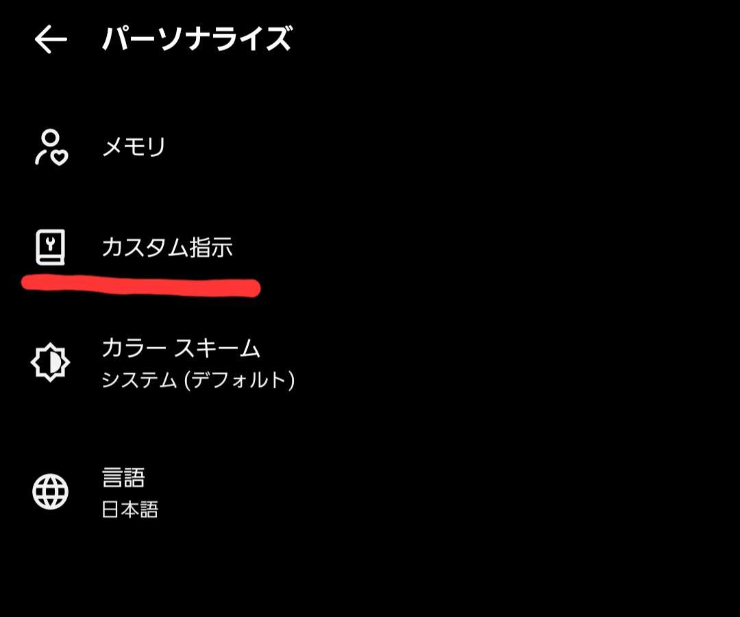 そしたらカスタマイズ指示(カスタム指示)の表記に違いがあることがわかったんよ。