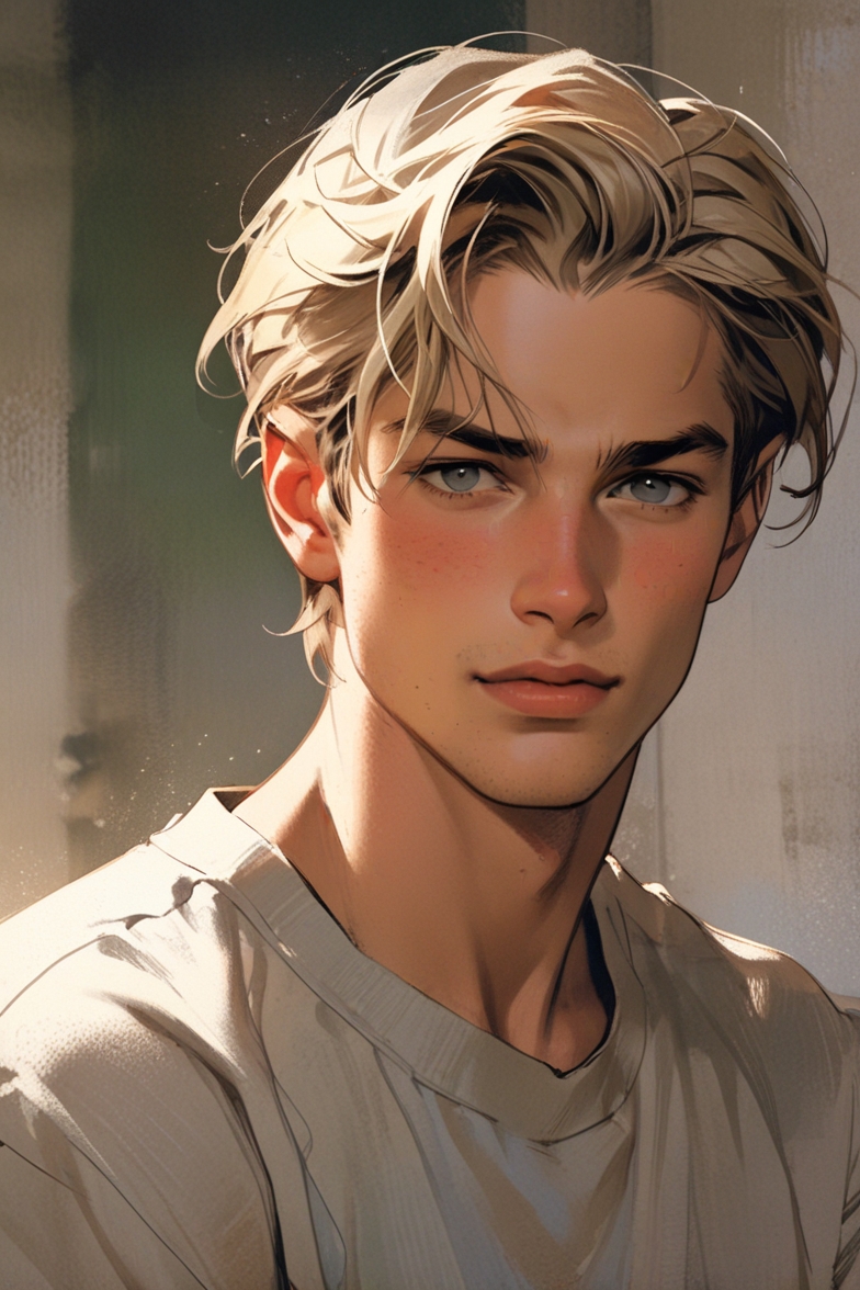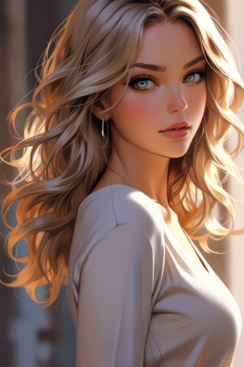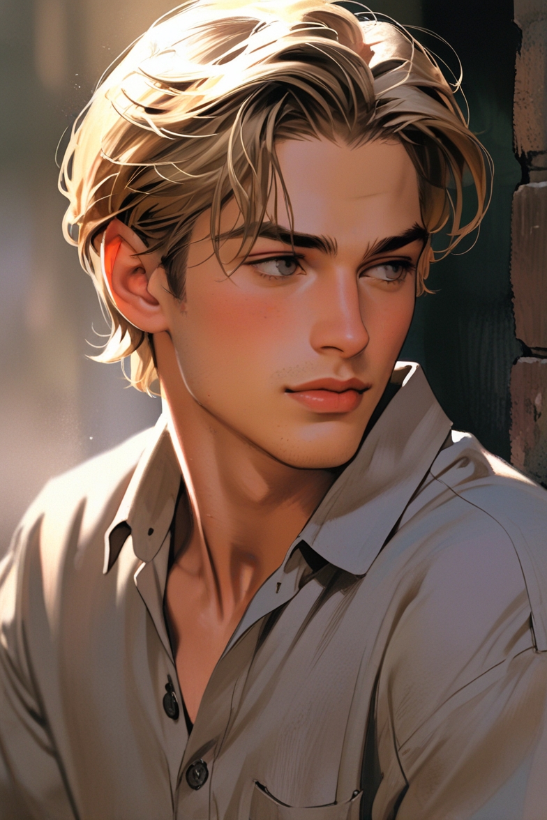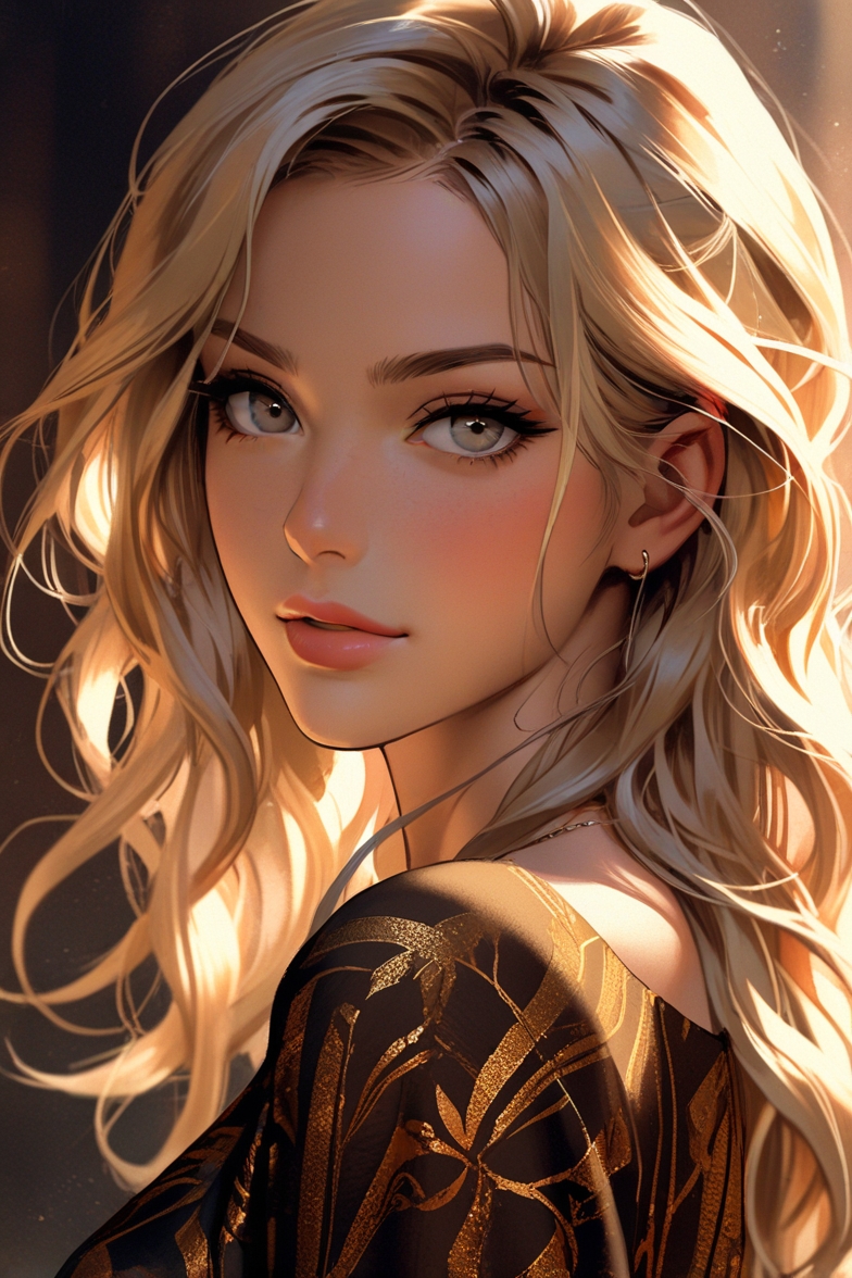髪色はゴールデンブロンド。瞳の色は本来ハニーゴールドなんですが、Leonardoで「ゴールデンブロンド+ハニーゴールドの瞳」の組み合わせはなかなか難しいことは経験上知っているので、顔立ちと髪色が合っていればよしとしています。