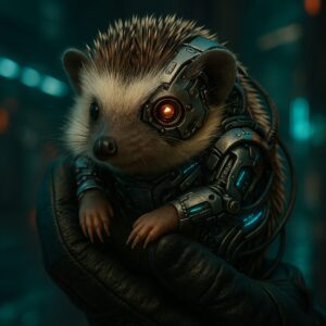 起き上がると、視界の隅で何かが動いた。小さな影──金属のボディと、有機的な柔らかさを併せ持ったサイボーグハリネズミが、あなたの足元にぴょん、と跳ねて寄ってくる。