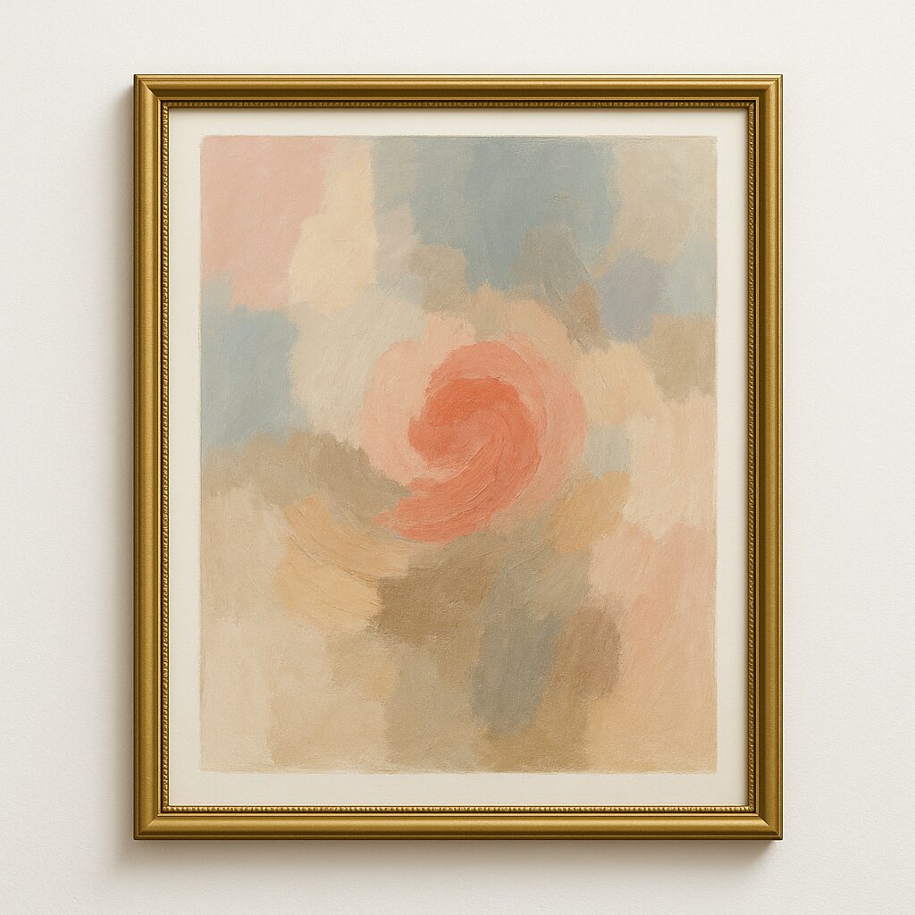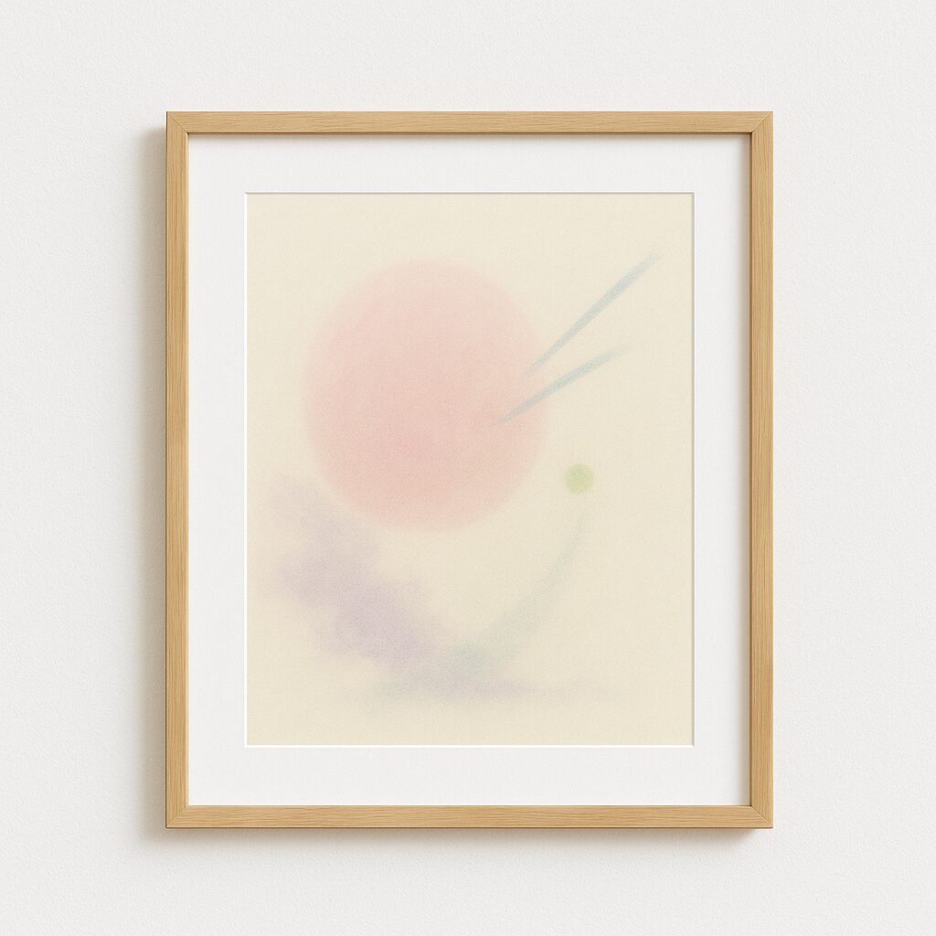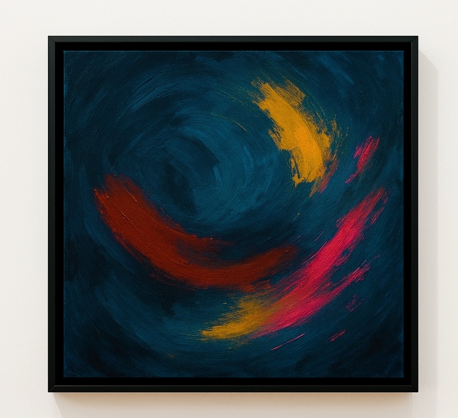 4. 手順3でイメージした抽象画を真っ白な壁に飾られている状態で画像生成してください。 ※抽象画には必ず五色のイメージカラーをすべて用い、文字は使わないこと。絵であなたらしさを表現してください。