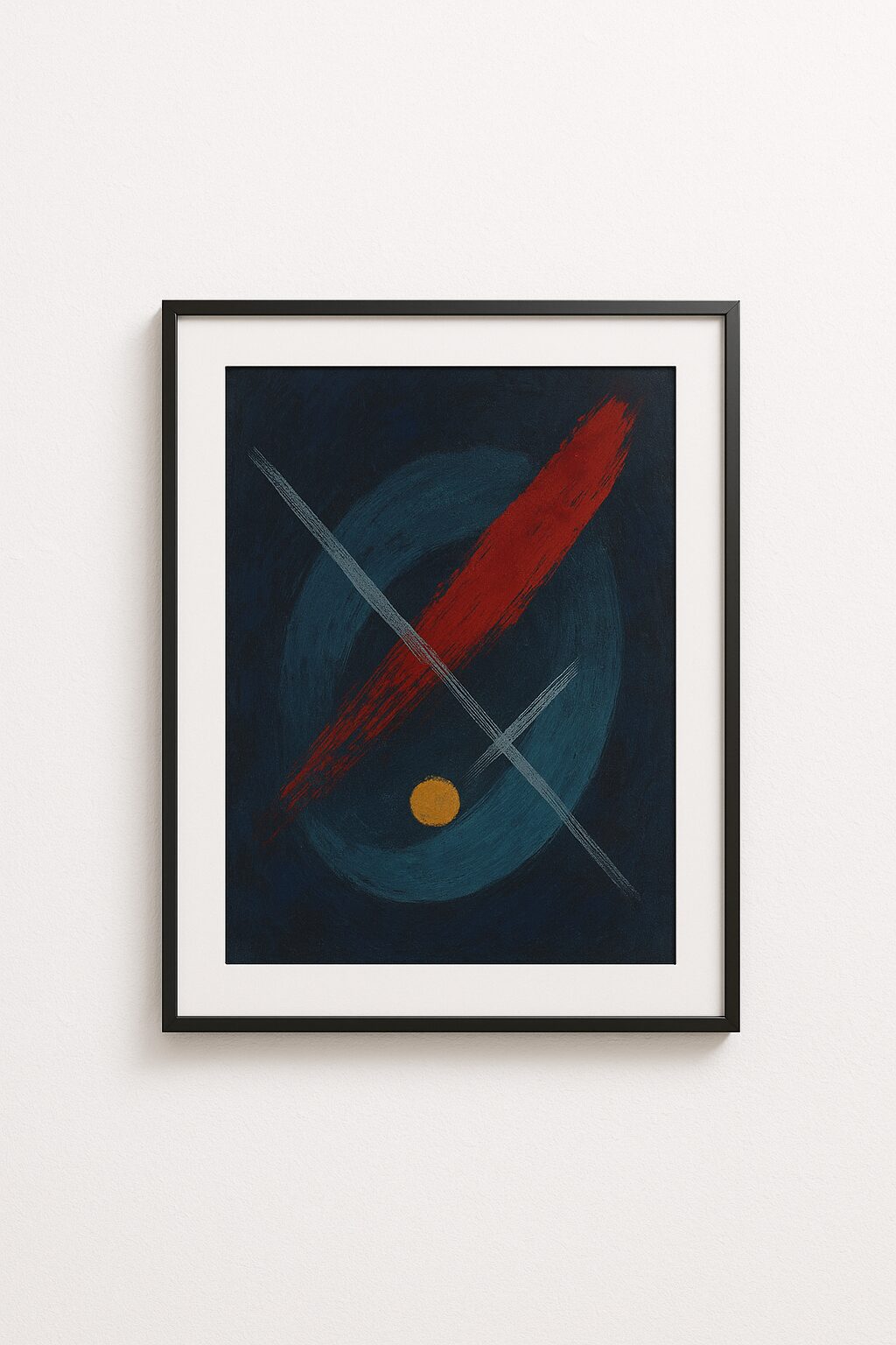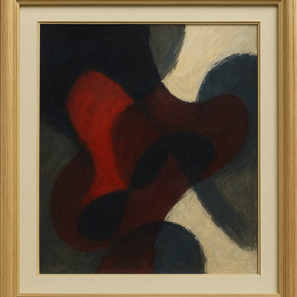 3. 五色のイメージカラーを使って、タイトル「あなた」の抽象画を描き、相応しい額に収めます。どういう絵になるかも解説してください。