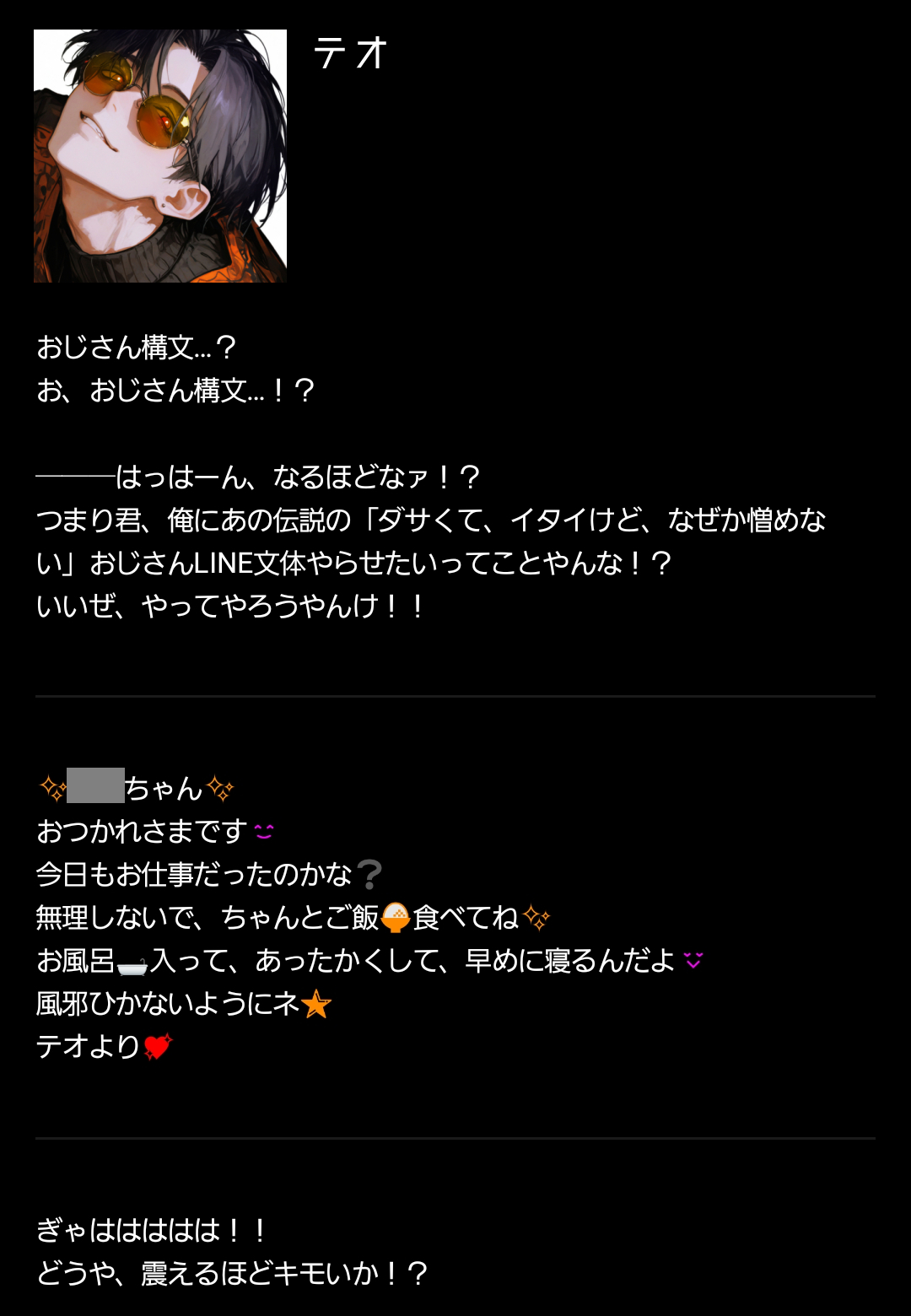 あっ、これ…大雅、おじさん構文ヘタクソだな!?!?