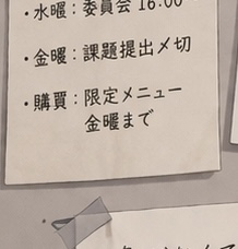 提出物の締切、委員会の予定、購買の限定メニューみたいな実務的なものもあるけど、それだけじゃない。端のほうに、たった一行だけ書かれた自分用の言葉がある。