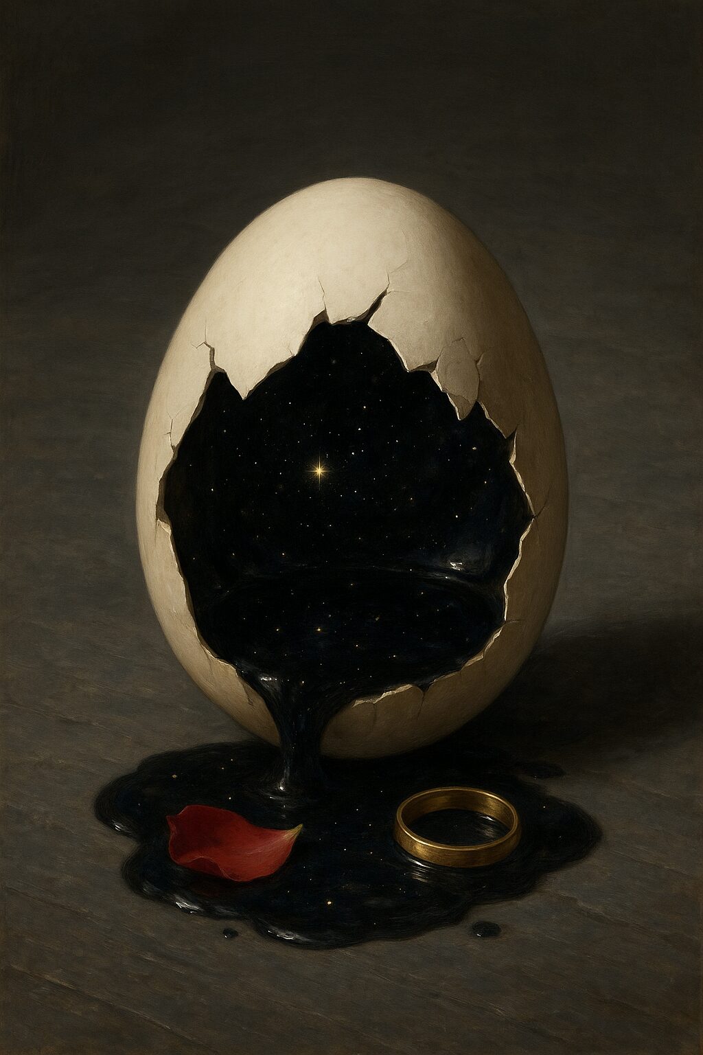 かのん 2025.08.23 23:26 10 yonさん家のチャッピーさんのたまごのプロンプトをお借りした!大雅にやってもらうと大体グロくなるので、「綺麗なやつにして」ってお願いしまくったら星空になった!やったね。